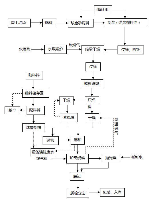 本項目主要生產設備、設施見表2.5-1,特種設備見表2.5-2。 表2.5-1 主要生產設備、設施一覽表 工序/線序號設備位置設備名稱規(guī)格和型號單位數(shù)量備注制釉線1車間1樓球磨機YE3-280-6 55KW(5T)臺14 2車間1樓球磨機YE2-250M-6 37KW(3T)臺1 3車間1樓球磨機YE2-180M-6 15KW(1.5T)臺1 42樓平臺上攪拌機WSS 3.7KW臺24 5釉線平臺上攪拌機WSS 3KW臺12 6車間1樓振動篩YZUL-15-2 1.1KW(1米)臺2 7車間1樓振動篩YZUL-15-2 1.5KW(2米)臺21 82樓平臺上電動葫蘆2.8T 8KW臺2 9車間1樓自動除鐵機1.8萬磁 3kw臺2 平臺線1出磚線下磚機順發(fā)單邊上下磚機 8kw臺6 2出磚線干式切割機蘭科 XTQ-4 8KW臺1 3素出磚平臺傳動電機YE2-802-4 0.75KW臺50 4釉出磚傳動電機YE2-802-4 0.75KW臺99 5素長平臺傳動電機YE2-802-4 1.1KW臺58 6釉長平臺傳動電機YE2-802-4 1.1KW臺47 7素、釉平臺自動分線機 臺2 煤氣站1主樓煤氣發(fā)生爐4.6m臺2一期二線建1臺2主樓1樓工藝風機TEV2-315S-2 110KW臺4 3加壓房加壓機YBX3-315L-2 160KW臺3 4煤場喂料機40T 4KW臺1 5煤場除塵機YE2-315M-4 132KW臺1 6煤場輸送帶YE3-112M-4 3KW臺5 7煤場YE3-112M-4 4KW臺7 8煤場YE3-112M-4 5.5KW臺3 9主樓YE3-112M-4 4KW臺2 10煤場滾筒篩YE3-160M-4 7.5KW臺1 施釉線1入磚線下磚機順發(fā)單邊上下磚機 8kw臺6 2施釉車間轉坯機1000mm 0.75kw套24 3施釉車間傳動電機YE2-802-4 0.75KW臺360 4施釉車間傳動電機YE2-802-4 0.55KW臺15 5噴墨房噴墨機TQ*325-4-SC(2)+MC(2)-19042705 14kw臺6 7施釉車間毛刷機800mm臺6 8施釉車間振動篩YZUL-15-2 0.75KW(800mm)臺14 9施釉車間加熱器220V 4.5kw臺38 10施釉車間除塵機YE3-280M-4 75KW臺1 11施釉車間高腳泵YE2-802-4 0.75KW臺14 12施釉車間吹風機YE2-802-4 0.75KW臺52 13施釉車間吹塵機YE2-802-4 1.5KW臺6 機電機修1馬路邊脫硫塔莫森環(huán)保套1 2脫硫塔循環(huán)泵YE2-315L-4 185KW臺2 3脫硫塔螺旋風機YE2-200L-4 30KW臺2 4脫硫塔循環(huán)池攪拌YE3-160L-4 15KW臺1 5脫硫塔抽石灰渣電機YE3-132S1-2 5.5KW臺2 6脫硫塔加藥泵YE3-100L2-4 3KW臺2 7脫硫塔工藝泵YE3-160L-2 18.5KW臺2 8脫硫塔過濾泵電機YE3-132S1-2 5.5KW臺2 9脫硫塔制藥攪拌機YE3-100L2-4 3KW臺1 10脫硫塔螺旋輸送電機YE2-180M-4 18.5KW臺1 11脫硫塔過濾池攪拌機YE3-112M-4 4KW臺1 12空壓機房空氣壓縮機BMF75-811 55KW臺4 窯爐線1釉燒窯排潮風機YE2-280S-4 75KW臺2 2釉燒窯一級排煙風機YE2-355M-4 250KW臺2 3釉燒窯二級排煙風機YE2-315S-4 110KW臺2 4釉燒窯一級助燃風機YE2-280M-2 90KW臺2 5釉燒窯二級助燃風機YE2-280S-2 75KW臺2 6釉燒窯急冷風機YE2-280S-2 75KW臺3 7釉燒窯抽熱風機YE2-315L2-4 200KW臺2 8釉燒窯直冷風機YE2-280S-2 75KW臺2 9釉燒窯尾冷風機YE2-280S-6 45KW臺1 10釉燒窯傳動電機NCJF04Y-Y90L4-1.5-23 1.5KW臺135 11素燒窯排潮風機YE2-315L-4 185KW臺2 12素燒窯一級排煙風機YE2-355M-4 250KW臺2 13素燒窯二級排煙風機YE2-315S-4 110KW臺2 14素燒窯一級助燃風機YE2-280M-2 90KW臺2 15素燒窯二級助燃風機YE2-280S-2 75KW臺2 16素燒窯急冷風機YE2-280S-2 75KW臺3 17素燒窯抽熱風機YE2-315L2-4 200KW臺2 18素燒窯直冷風機YE2-280S-2 75KW臺2 19素燒窯尾冷風機YE2-280S-6 45KW臺1 20素燒窯傳動電機NCJF04Y-Y90L4-1.5-23 1.5KW臺100 21素燒干燥窯傳動電機NCJF04Y-Y90L4-1.5-43 1.5KW臺60 22脫硫管線引風機YE3-355L3-6 315KW臺1 分選線1檢選車間磨邊機800mm 115KW臺12 2檢選車間除塵機YE2-280M-4 90KW臺1 3檢選車間YE2-280S-4 75KW臺1 4檢選車間覆膜機蘭科立輝機電SKT-800 3KW臺6 5檢選車間自動打包機多麥 8KW臺6 6檢選車間手動打包機MH-101A 1KW臺2 7檢選車間自動碼垛機多麥 8KW臺6 8檢選車間疊磚機10KW臺6 9檢選車間柱塞泵YE2-180L-4 22KW臺2 壓機線1壓機車間薩克米壓機PHC3500 100KW臺6 2壓機車間料車明協(xié)400*800 3kw臺6 3壓機車間除塵器YX3-315M-4 132KW臺1 4壓機車間翻坯器YS7124 3KW臺6 5壓機車間磨坯機1000mm 2.2kw臺6 6平臺連接線傳動電機YE2-802-4 0.75KW臺122 7壓機車間送粉輸送帶YE3-112M-4 3KW臺20 8壓機車間YE3-112M-4 4KW臺4 9壓機車間YE3-132M-4 5.5KW臺2 備料線1噴霧塔噴霧塔12000型臺1 2噴霧塔風機YE2-400L1-6 400KW臺1 3噴霧塔振動篩YZUL-15-2 1.5KW臺12 4噴霧塔柱塞泵YE2-180L-4 22KW臺1 5噴霧塔柱塞泵YE2-200L-4 30KW臺2 6噴霧塔華巖泵YE2-280S-2 75KW臺2 7噴霧塔華巖泵YE2-160M-2 11KW臺2 8噴霧塔輸送帶YX3-90L-4F2A 1.5KW臺5 9噴霧塔YE3-112M-4 3KW臺1 10噴霧塔YE3-112M-4 4KW臺9 11噴霧塔YE3-132M-4 5.5KW臺1 12噴霧塔攪拌機YE2-132M-4 5.5KW臺6 13噴霧塔水煤漿爐9M臺1 14球磨車間水煤漿車間球磨機60噸 YE3-355M-4 250KW套10 1560噸 YE3-315M2-4 200KW套4 16球磨車間柱塞泵YE2-200L-4 30KW臺3 17球磨車間振動篩YZUL-15-2 1.5KW臺15 18球磨車間喂料機25噸 4KW臺2 19球磨車間除鐵機自動 3KW臺6 20球磨車間攪拌機YE2-132M-4 5.5KW臺6 21球磨車間YE2-132M-4 7.5KW臺7 22球磨車間YE2-180L-8 11KW臺2 23球磨車間輸送帶YX3-100L1-4 2.2KW臺4 24球磨車間YE3-112M-4 4KW臺6 25球磨車間YE3-132M-4 5.5KW臺6 26水煤漿球磨柱塞泵YE2-200L-4 30KW臺2 27水煤漿球磨振動篩YZUL-15-2 1.5KW臺5 28水煤漿球磨攪拌機YE2-132M-4 7.5KW臺2 29水煤漿球磨輸送帶YE3-112M-4 3KW臺2 30水煤漿球磨YE3-112M-4 4KW臺4表2.5-2 特種設備一覽表 序號工序/線設備位置設備名稱規(guī)格和型號單位數(shù)量功率(kw)1制釉線2樓平臺上電動葫蘆2.8T 8KW臺2162機電機修空壓機房空氣儲罐BMF75-811 55KW臺42203煤氣站/煤氣發(fā)生爐汽包、水夾套及其管道φ4.6m/0.8MPa臺2 4制釉、檢選、倉庫/叉車(柴油)3T臺6廠區(qū)電源由萬年縣供電公司鳳巢工業(yè)園區(qū)專用110KV/10KV輸變電工程供應,采用埋地敷設至廠區(qū)變電房內。 本工程設置1臺額定功率1000kW柴油發(fā)電機以滿足二
